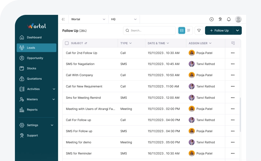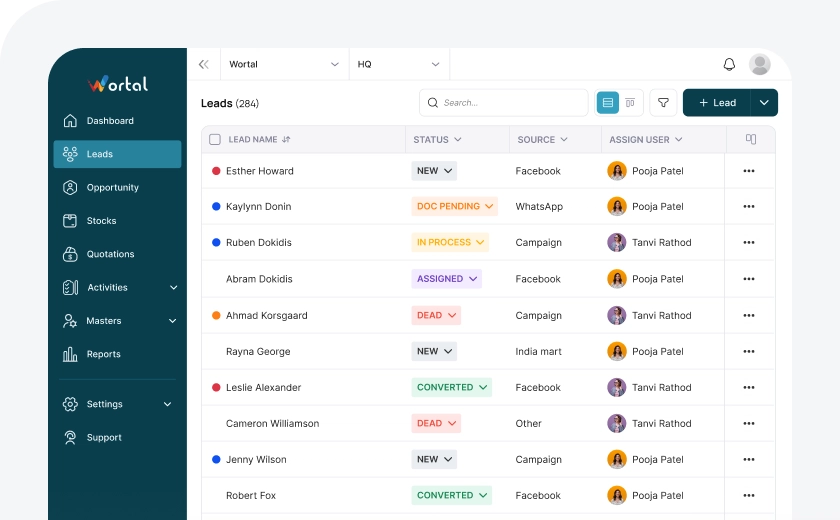 Wortal gives you flexibility to define rules and automate lead assignment process as per your business needs. This will help you to assign leads to appropriate team members without any manual intervention.
