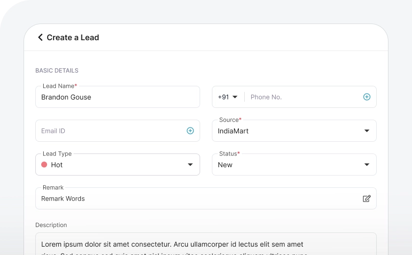 All documents related to a lead, like catalogs or KYC forms, can be stored in one place. This makes it easy to access everything you need without searching at different folders and locations, keeping things simple and organized.