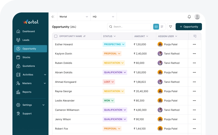 Wortal gives admins complete control over opportunity distribution, allowing them to decide who assigns opportunity to team members. With just a few clicks, opportunity can be quickly filtered and assigned based on set criteria. The mass update feature makes it even easier, enabling bulk opportunity assignments in seconds.